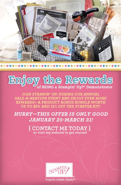 While anytime is a great time to join the Stampin’ Up! Family as a demonstrator, joining during Sale-A-Bration is especially sweet! Starting your own Stampin’ Up! Business means free and discounted products, plus a little extra cash–and who couldn’t use that?