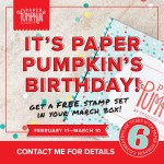 To celebrate this fun occasion and to thank everyone who supports Paper Pumpkin month after month, Stampin’ Up! is offering a specially-designed March kit and a FREE STAMP SET. Oh, yes. You read that right. In March, you will receive TWO stamp sets with your Paper Pumpkin kit. Here’s the link to subscribe.